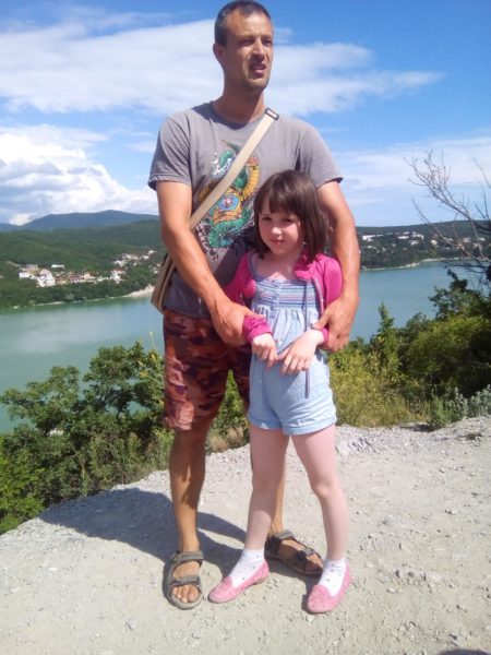 Денис с дочкой Лерой. Лера боится высоты, поэтому папа крепко держит